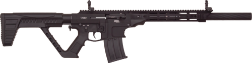The vr80 12ga shotgun is a gas-operated semi-automatic 12ga shotgun and has an upper and lower receiver constructed from 7075 t^ aluminum.It has a fixed magazine release block with a 5+1 capacity of 2-3/4" and 3" shells.It also features a fluted barrel shroud.Ca compliant.
