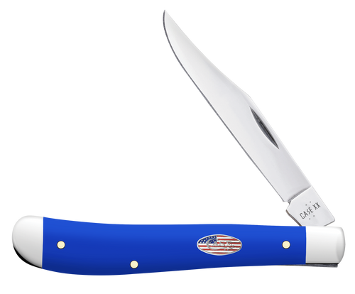 Case 16403 Trapper Slimline 3.25" Folding Clip Point Plain Mirror Polished Carbon Steel Blade, Smooth Royal Blue Synthetic Handle