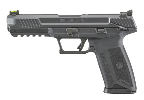The ruger-57 features impressive ergonomics which include an easy trigger reach, 1911-style ambidextrous manual safety, robust slide release and reversible magazine release latch.Through hardened, billet steel slide with lightening cuts is drilled and tapped for easy mounting of optics.The alloy steel barrel features a black nitride treatment for wear resistance, while the textured, ergonomic frame provides a secure and comfortable grip.It utilizes ruger's safe, reliable and proven secure action fire-control system that combines a protected internal hammer with a bladed-safety trigger.The trigger has a short, smooth pull, clean break and positive reset.Safety features include: 1911-style ambidextrous manual safety; an integrated trigger safety; light-weight firing pin; neutrally balanced sear; and hammer catch.The ruger-57 also features inspection port and picatinny-style accessory rail for easy mounting of lights and lasers.