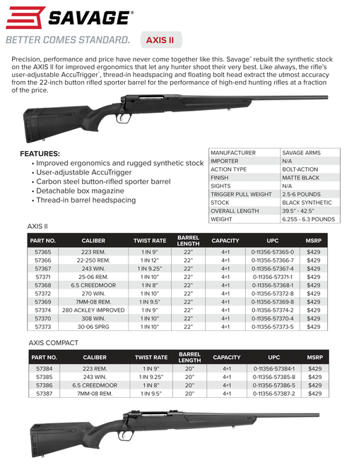 Savage Axis Ii, Sav 57384 Axis Ii Compact 223 Rem Blksyn