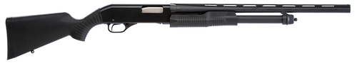 The stevens 320 field grade compact pump shotgun is chambered in 20 gauge with a 5+1 capacity.It has a 22" carbon steel barrel and black synthetic stock.The receiver and barrel have a black finish.