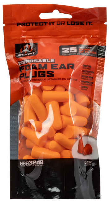Walkers Game Ear Foam Ear Plugs, Wlkr Gwpfp25bag Foam Ear Plug 25pair Nrr32db